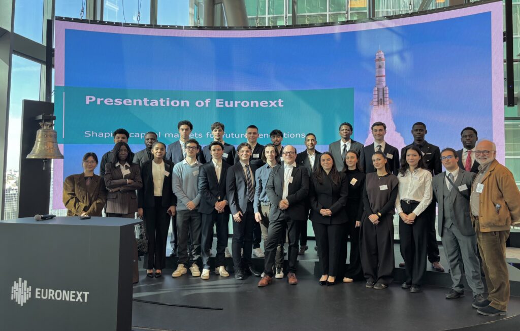 L’après-midi, la visite du siège d’Euronext Paris à La Défense a offert une immersion au cœur des marchés financiers européens. Salles de cotation, systèmes de surveillance et décisions stratégiques en temps réel ont illustré la complexité des infrastructures boursières. Les présentations de Yves Boullet, Quentin Jacqueson, ainsi que les témoignages de professionnels tels que Hugo Flamain, Marlyne Cherier et Anne Denisart-Trémenbert, ont transformé les notions de finance en expériences concrètes et inspirantes, mettant en lumière l’impact des décisions financières à l’échelle européenne et globale.